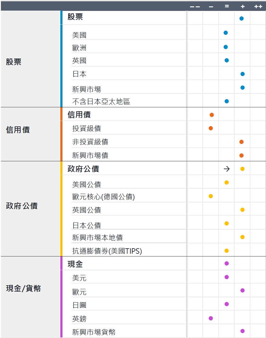 戰術性資產配置觀點一覽表