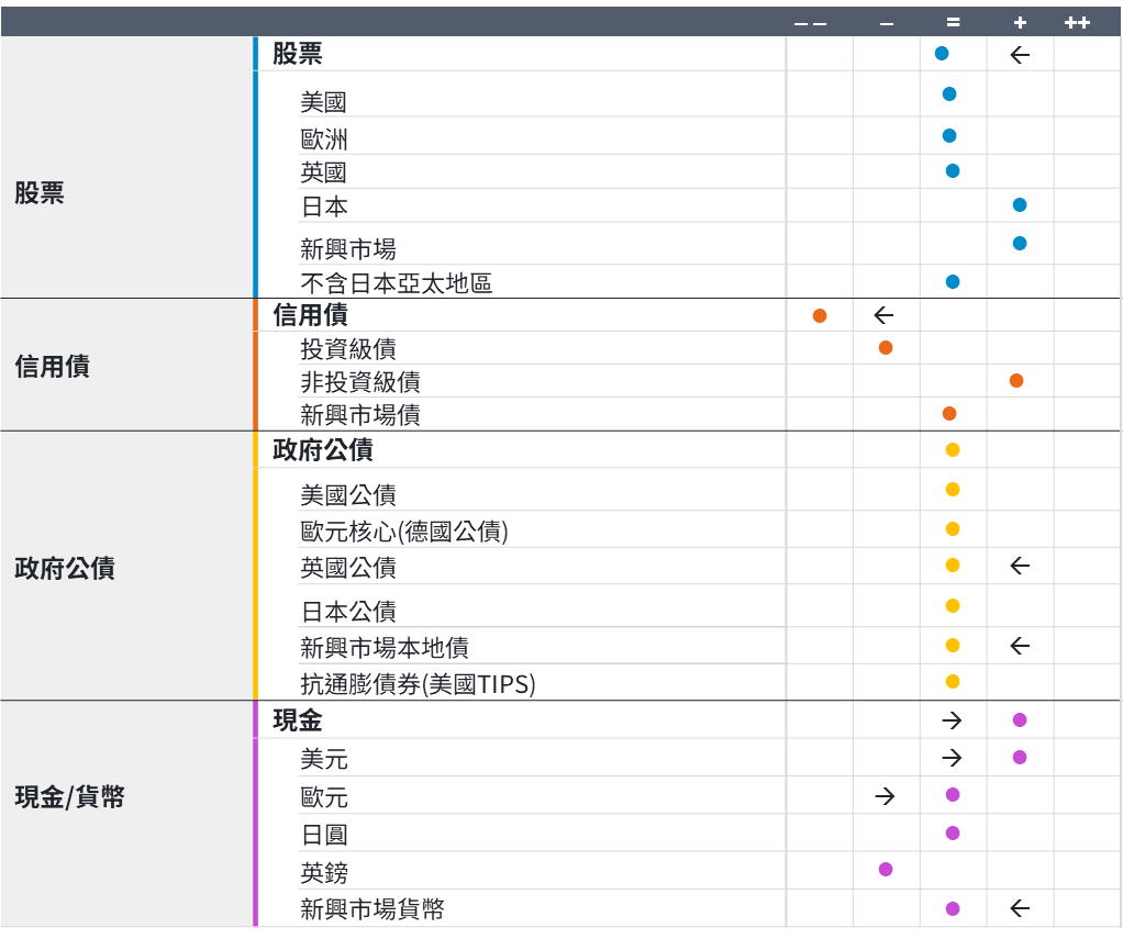 戰術性資產配置觀點一覽表