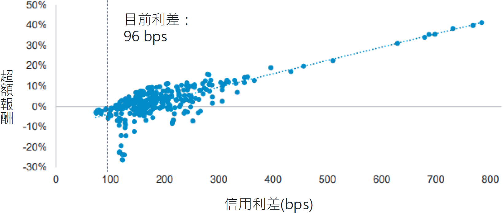信用利差與超額報酬高度相關,留意公司債後續表現: