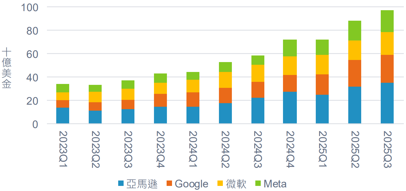 上週主要科技企業陸續公布財報並釋出資本支出指引,三大雲端服務業者表現亮眼:微軟雲端業務營收達491億美元,年增26%;亞馬遜 AWS 營收330億美元,年增20%;Google 雲端營收151.6億美元,年增34%,皆優於市場預期。雲端業務成長動能主要來自生成式 AI 應用普及,以及企業對高效能運算與雲端基礎建設的需求提升。