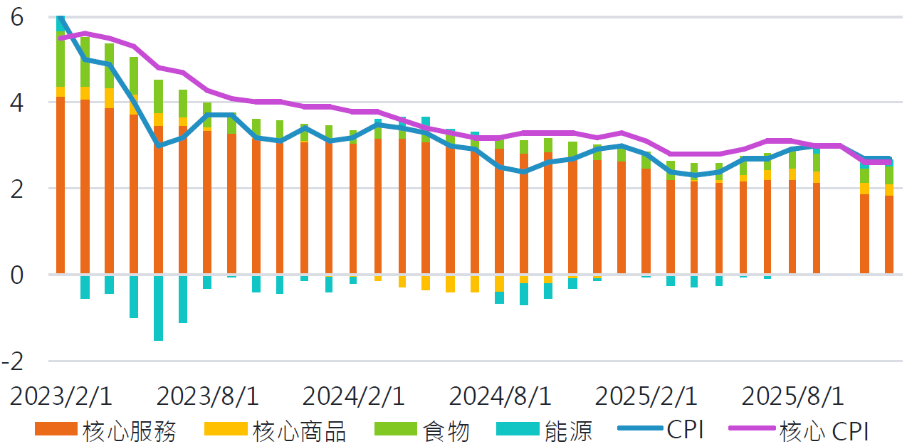 美國 12 月 CPI 年增率為 2.7%,與上月持平,能源與食物為此次支撐 CPI 的主要項目,生活成本壓力尚未消退。市場原先預期通膨數據可能反彈,因部分分析認為前期溫和數據或受折扣促銷及資料不完整影響而失真。但最新數據顯示,12 月份核心 CPI 年增率略降至 2.6%,顯示通膨走勢略有放緩。