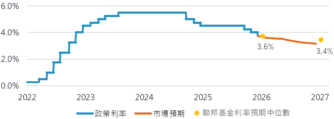 - 總經及利率觀點:鑒於美國經濟成長仍具韌性,且關稅措施可能帶來通膨上行風險,我們對美國公債維持減碼立場。目前市場價格反映未來仍有 2 至 3 碼的降息空間,惟實際降息幅度與時間點,仍可能受到經濟成長動能及通膨變化的影響。
