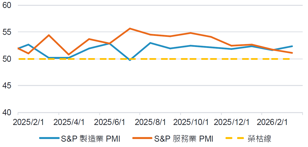 標普全球最新公布美國 3 月綜合 PMI 初值為 51.4,為過去 11 個月以來的低點,雖仍維持在 50 榮枯線以上,但動能明顯轉弱。此次 PMI 下滑主要受到服務業放緩影響,企業普遍反映,中東衝突引發的不確定性與生活成本上升,已對需求造成壓力,尤其在旅遊、運輸與觀光相關產業表現疲弱。相較之下,製造業呈現回穩跡象。製造業 PMI 升至 52.4,不僅高於前值,也優於市場預期,訂單成長創去年 10 月以來最佳,產出亦略有加快,顯示部分產業受關稅影響減輕,支撐製造業表現。