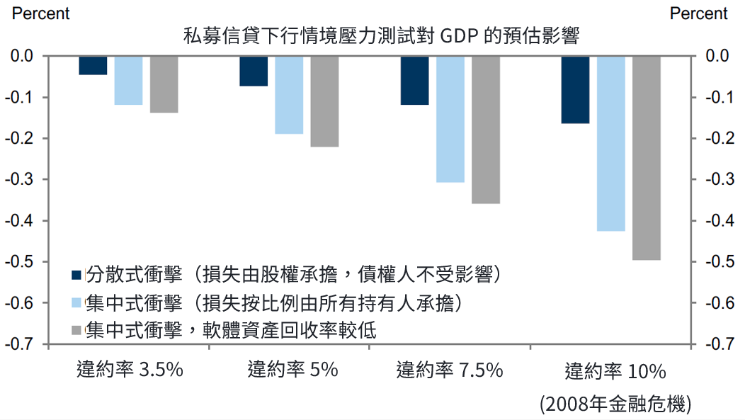 即使在極端違約情境下,私募信貸對 GDP 的拖累仍有限